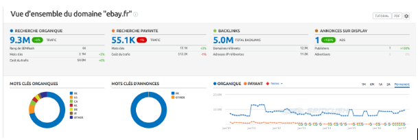 Tout d’abord, utilisez SEMrush pour analyser et les sites de vos concurrents sur ce même secteur. Ici nous avons effectué une recherche sur le site de vente en ligne Ebay :